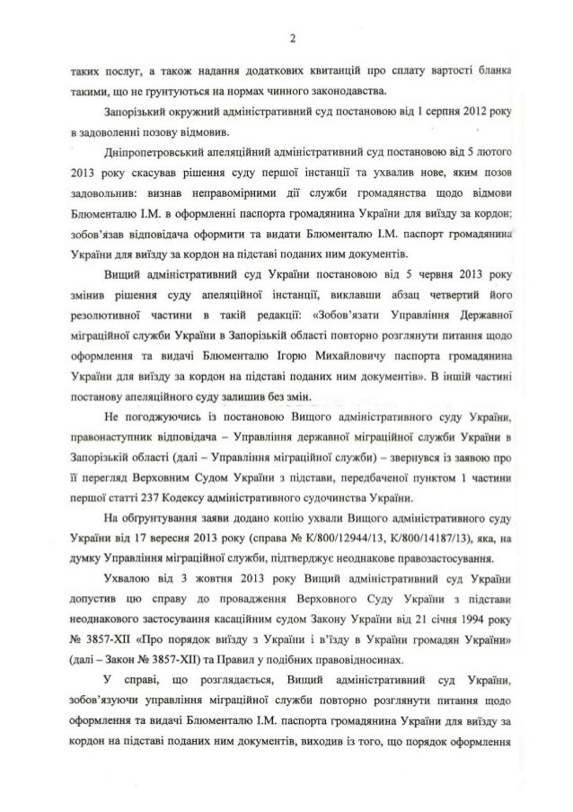 Активісти кампанії "Стоп свавіллю в паспортних столах!" запоріжці Ігор Блюменталь та Руслан Жиров у судових баталіях дійшли до Вищого адміністративного суду. Однак, рішення касаційних судів у двох ідентичних справах мали різний результат.