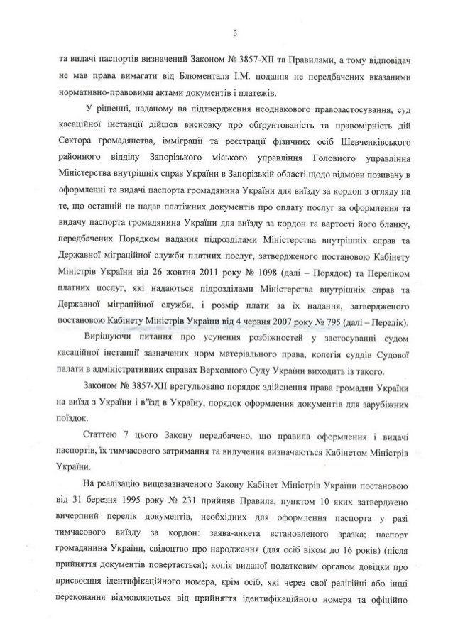 У рішенні від 05.06.2013 року Феміда підтвердила єдину законну вартість закордонного паспорта на суму 170 гривень. А у рішенні від 17.09.2013 року судді стали на бік здирників ДМС, які безпідставно вимагають з громадян додаткові 87,15 гривень за невідомі платні послуги та 120 гривень за бланк паспорта, який є власністю держави.