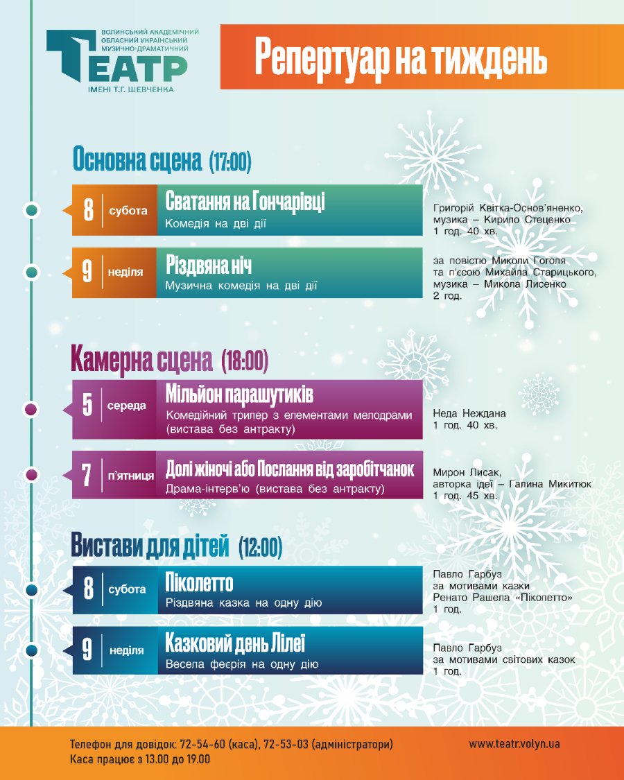 Театральний анонс: огляд вистав у Луцьку 5 – 9 лютого