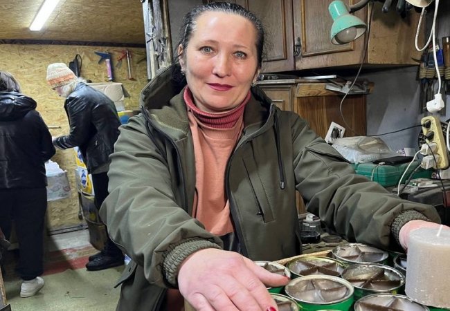 Чоловік Тетяни Коваль пішов служити на початку повномасштабної війни. Зі слів жінки, поки господар у війську, у його майстерні вона разом із подругами виготовляє окопні свічки.