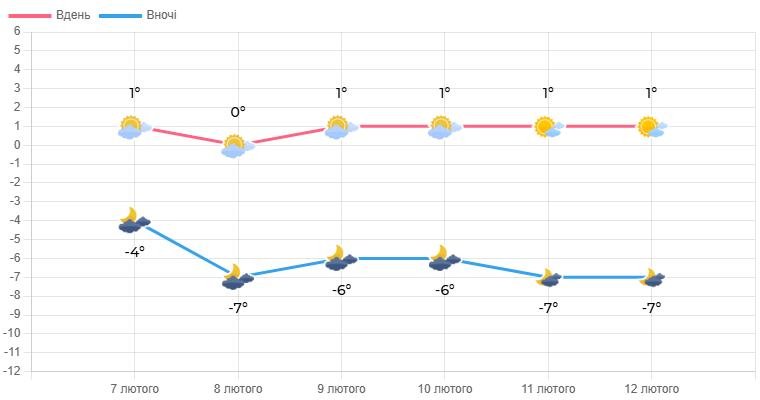 Нічна температура буде знижуватися до 3-8⁰ морозу, денна становитиме від 3⁰ морозу до 2⁰ тепла.