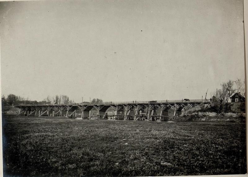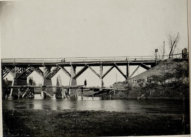 Зліва - теперішня вулиця Гнідавська. Міст досі існує, тільки перебудований в 1950-х роках на залізобетонний