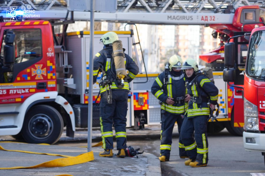 Для оперативного реагування на можливі наслідки пожежі на місце події направлено 9 пожежних автоцистерн та дві автодрабини луцьких частин служби 101.