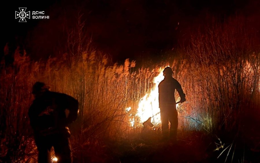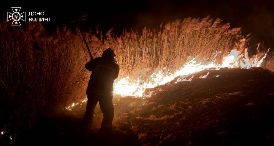 Увечері 5 березня у Луцькому районі горів очерет, суха трава і чагарники на заболоченому схилі біля села Мстишин.