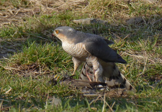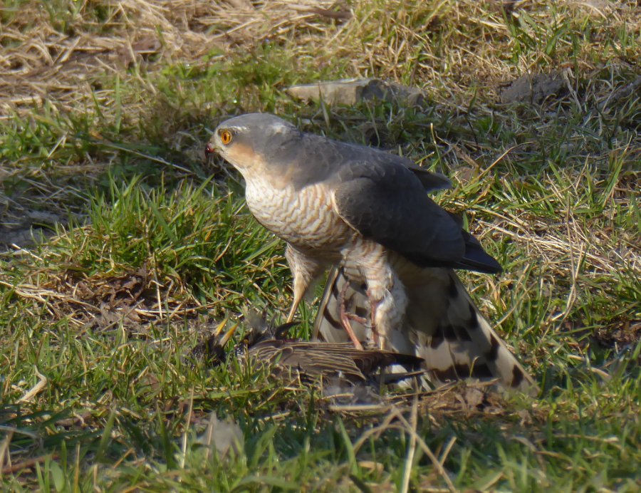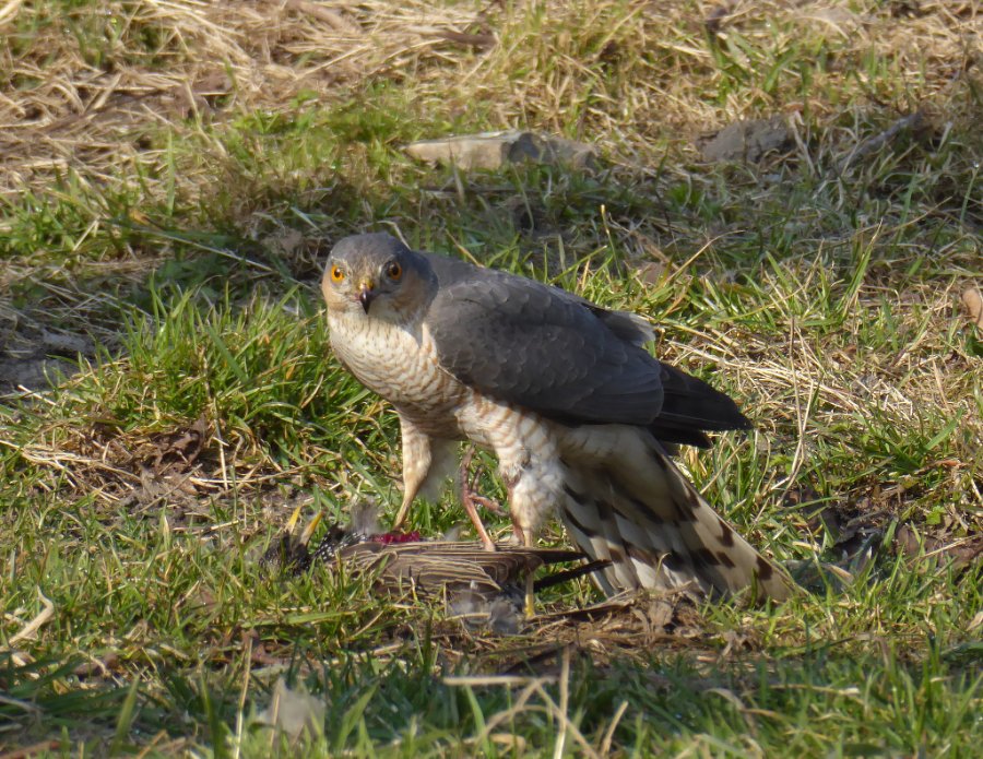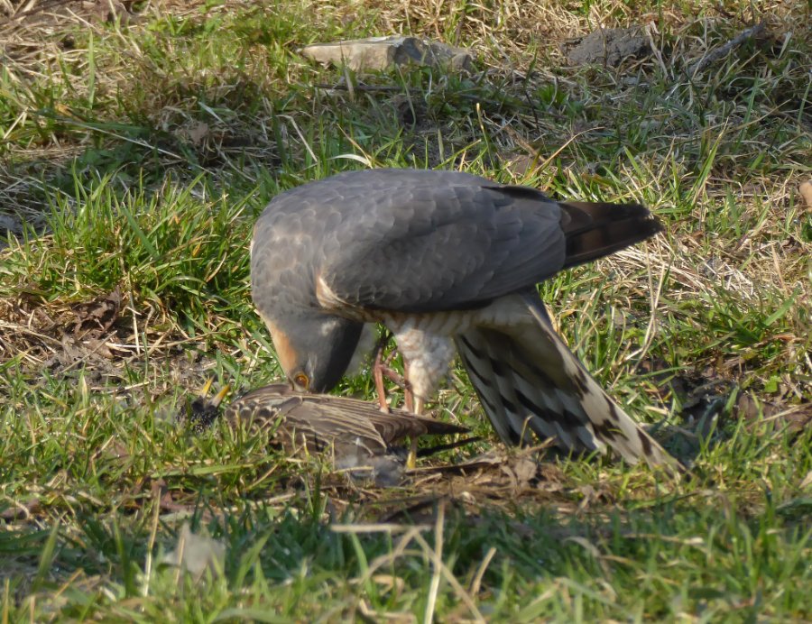 У Ківерцівському національному природному парку “Цуманська пуща” працівники стали свідками захопливої сцени дикої природи. Яструб малий вполював шпака та трапезував ним.