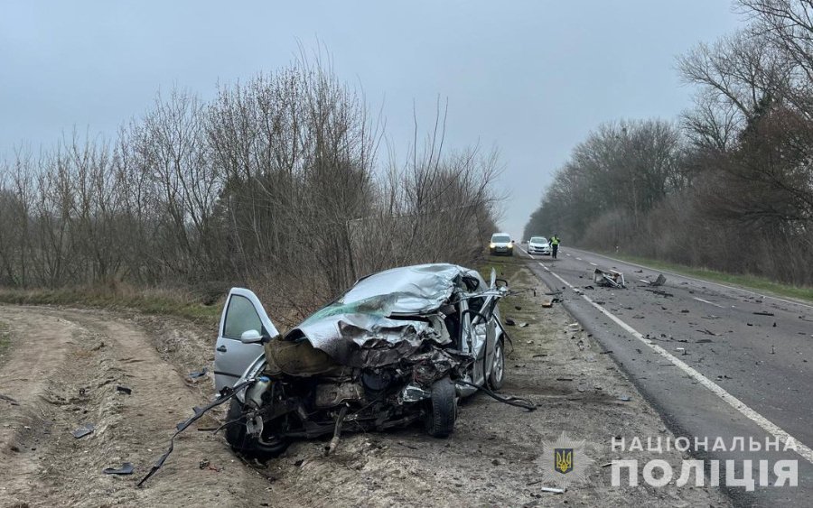 41-річний водій автомобіля Volkswagen Golf виїхав на смугу зустрічного руху та зіткнувся із вантажівкою Mercedes Axor, під керуванням 51-річного жителя Вінницької області.