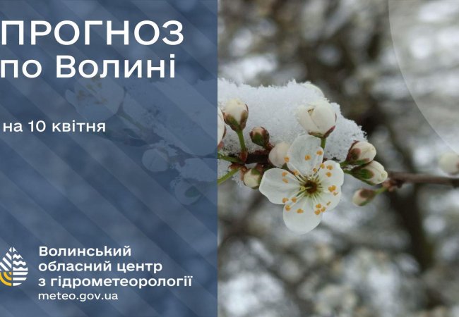 Волинський обласний центр з гідрометеорології опублікував прогноз погоди на 9 квітня.