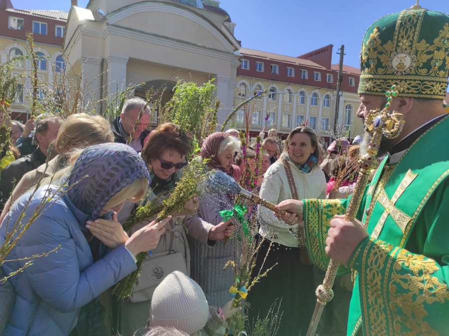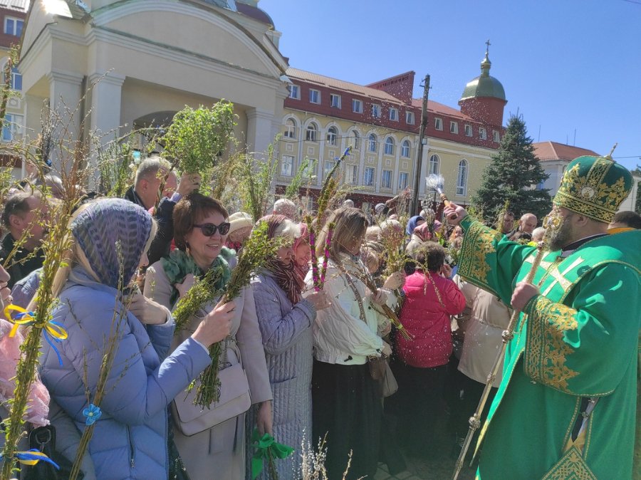 У Волинській єпархії ПЦУ відзначили свято Входу Господнього в Єрусалим. У соборі в центрі Луцька багато вірян освятили вербу.
