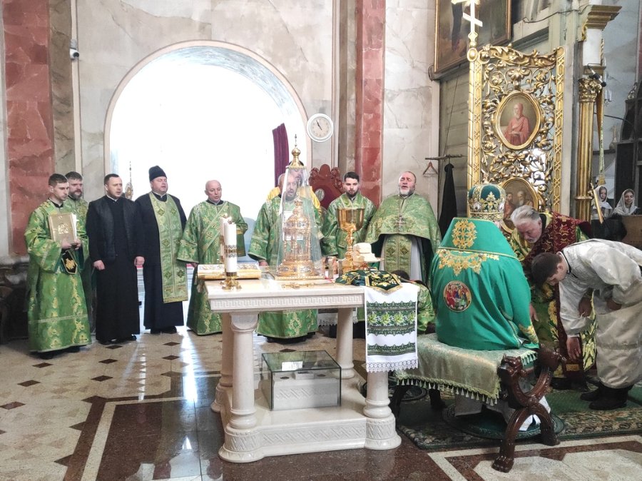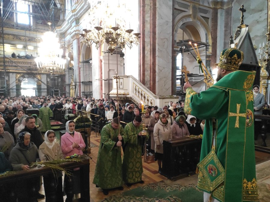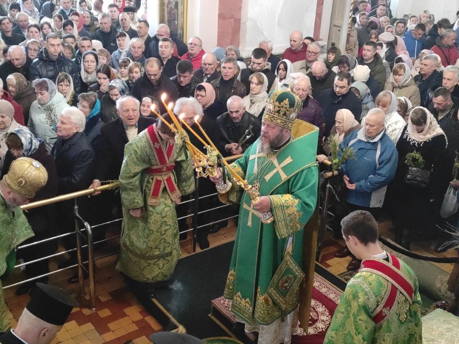 У Вербну неділю митрополит Луцький і Волинський Михаїл очолив Божественну Літургію в кафедральному соборі Святої Трійці.
