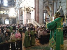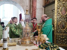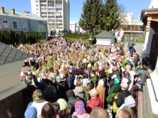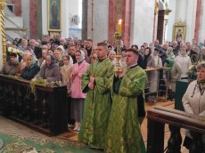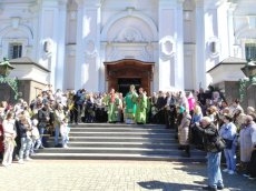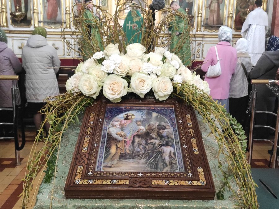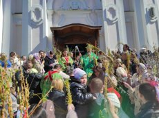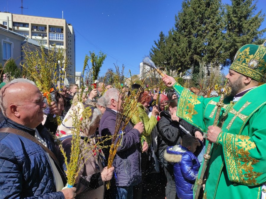 На завершення Богослужіння високопреосвященний виголосив проповідь та освятив гілля верби на соборній площі. Впродовж дня духовенство головного храму єпархії продовжувало освячувати віття.
