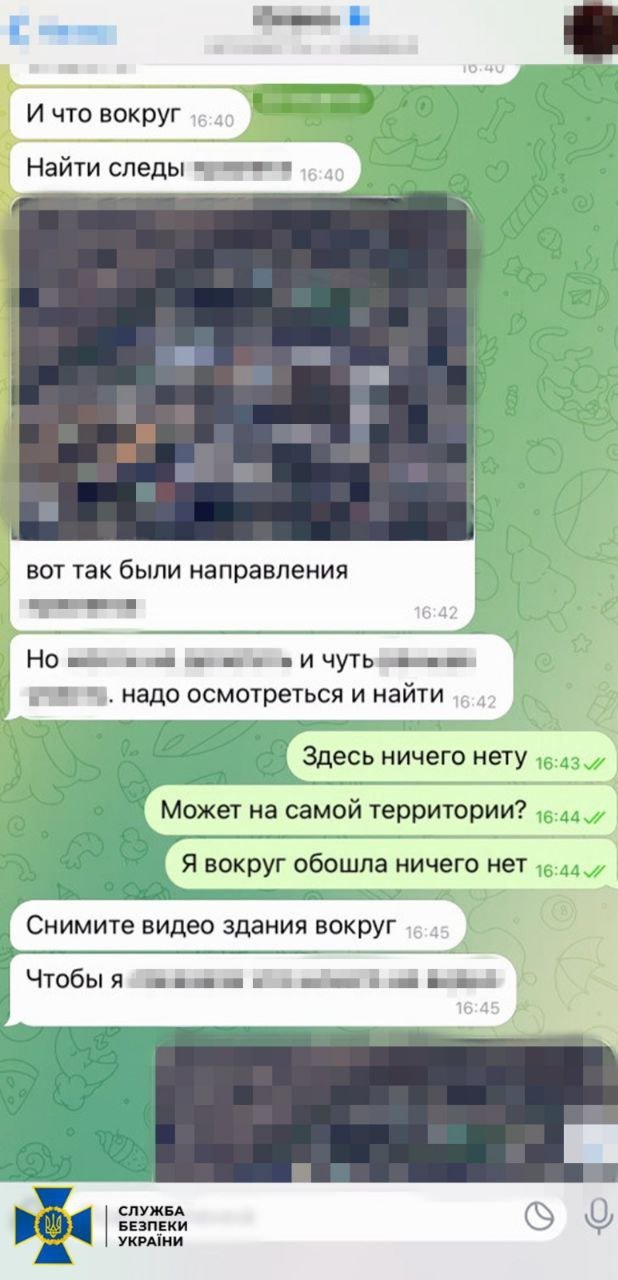 Під час розслідування встановлено додаткове завдання агентки – відстеження наслідків ворожих «прильотів» по Київщині. Для цього вона періодично об’їжджала локації, які отримувала від куратора.