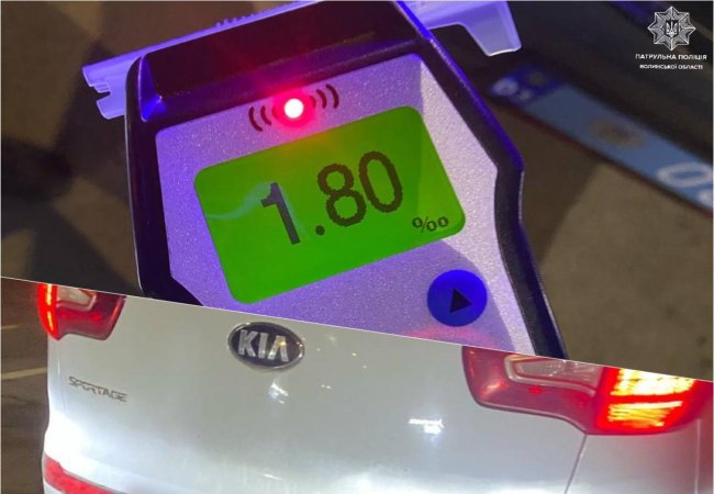 Жінці запропонували пройти огляд на місці за допомогою приладу Драгер. Результат — 1,80 проміле.