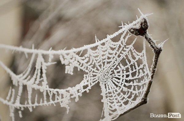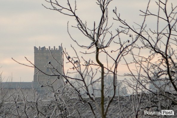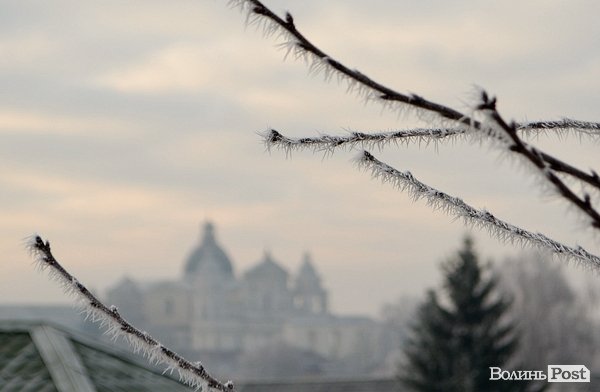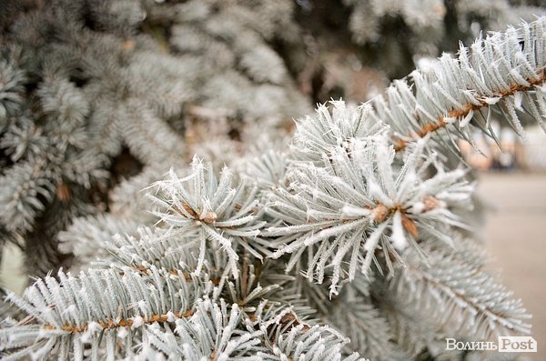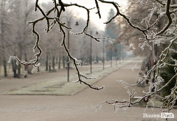 Ранок вівторка, 31 грудня зустрів лучан зимовим настроєм: через нічний туман і низьку температуру повітря на гіллі дерев і кущів, вуличних ліхтарях, автомобілях і парканах з’явилося біле льодяне мереживо.
