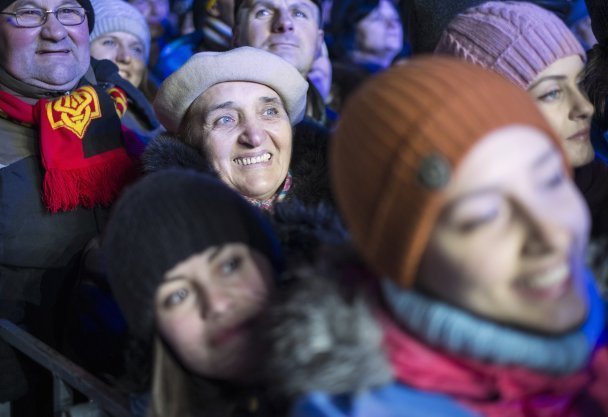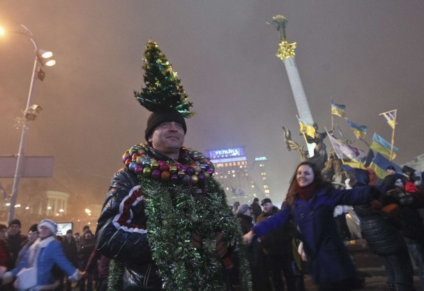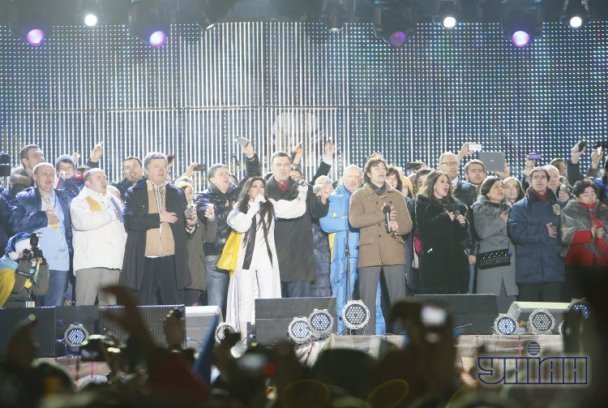 А от у Новий рік українці увійшли, виконавши хором гімн України, який тягне на рекорд. При цьому він супроводжувався тисячами вогників від ліхтариків. Увесь Майдан світився.