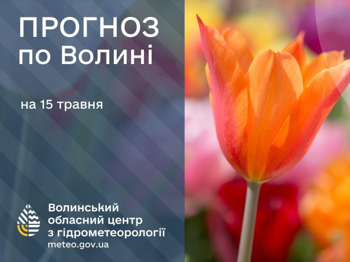 Волинський обласний центр з гідрометеорології опублікував прогноз погоди на 15 травня.