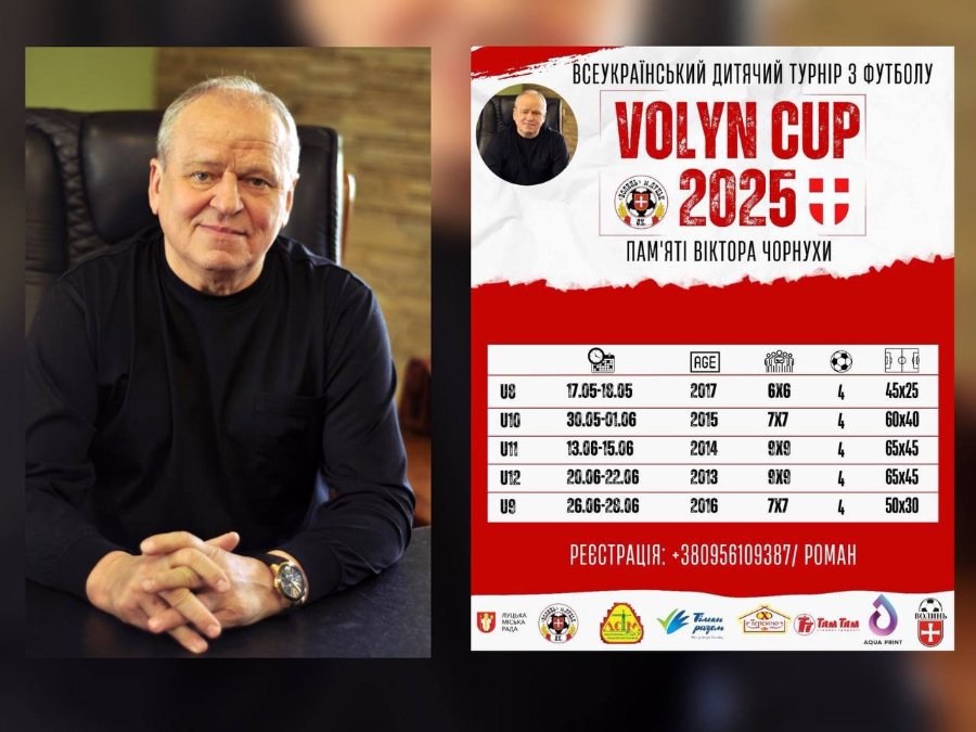 У Луцьку відбудеться Всеукраїнський дитячий турнір з футболу «Volyn Cup 2024» на честь Віктора Чорнухи — знаного волинського підприємця, забудовника, засновника компанії «Луцьксантехмонтаж», мецената, Заслуженого будівельника України та Почесного громадянина Луцька.