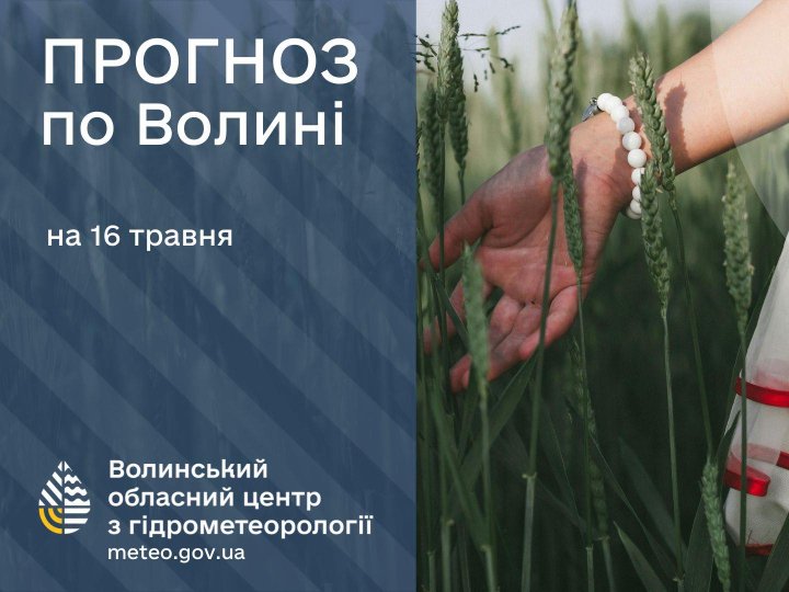 Волинський обласний центр з гідрометеорології опублікував прогноз погоди на 16 травня.