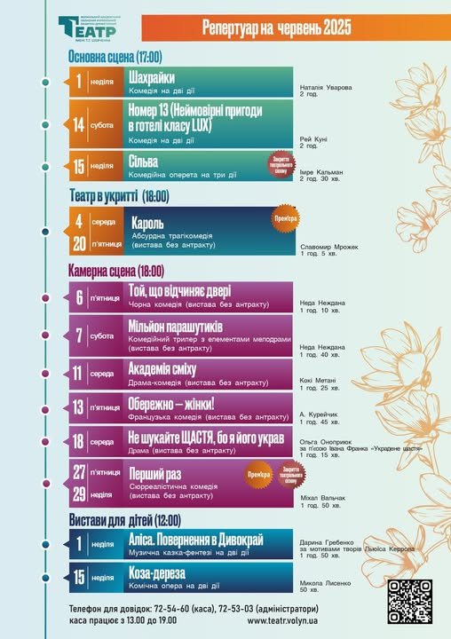 Волинський академічний обласний український музично-драматичний театр імені Тараса Шевченка підготував для поціновувачів театрального мистецтва анонс вистав, що відбудуться у червні.