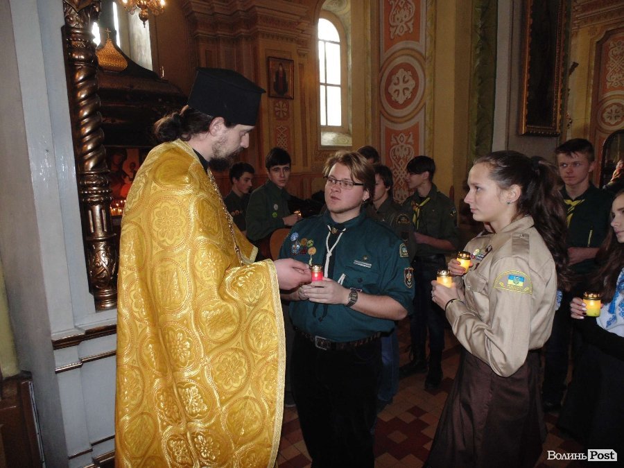 Пластуни передали Вифлиємський вогонь православній громаді Луцька. ФОТО. ВІДЕО
