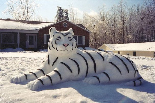 Найчастіше «музами» для створення снігових скульптур стають звичайні домашні тварини. Але деякі люди ліплять зі снігу веселих героїв дитячих мультфільмів.