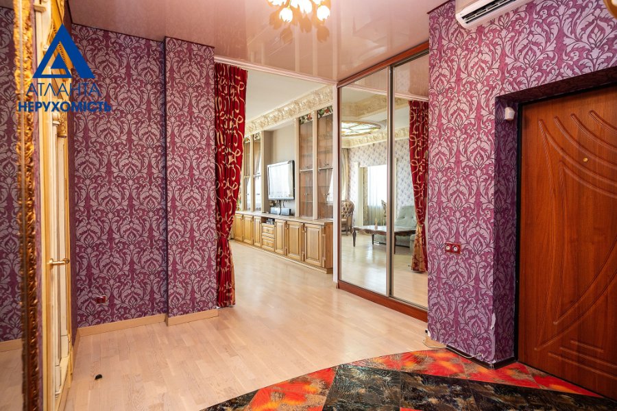 За інформацією рієлторів, квартира площею 120,4 кв.м розташована на другому поверсі 12-поверхового будинку. Має просторе планування. Оснащена індивідуальним електричним опаленням, зонованою теплою підлогою, охоронною сигналізацією, відеонаглядом і сучасною побутовою технікою. Є гардеробна, великий балкон з видом на річку Стир, паркомісце, закрита територія з власною набережною та укриттям. До центру міста — всього п’ять хвилин.