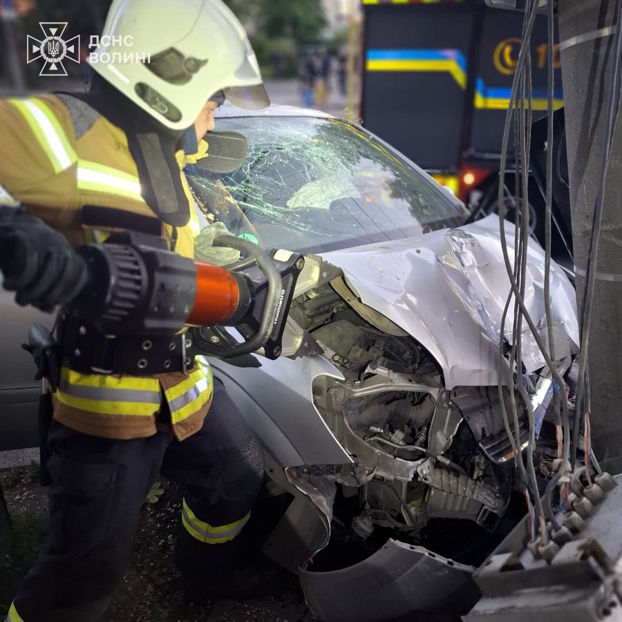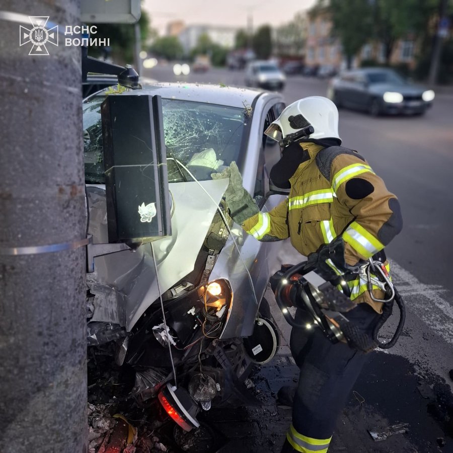 В обласному центрі Волині сталася дорожньо-транспортна пригода, під час якої автомобіль врізався в електроопору.