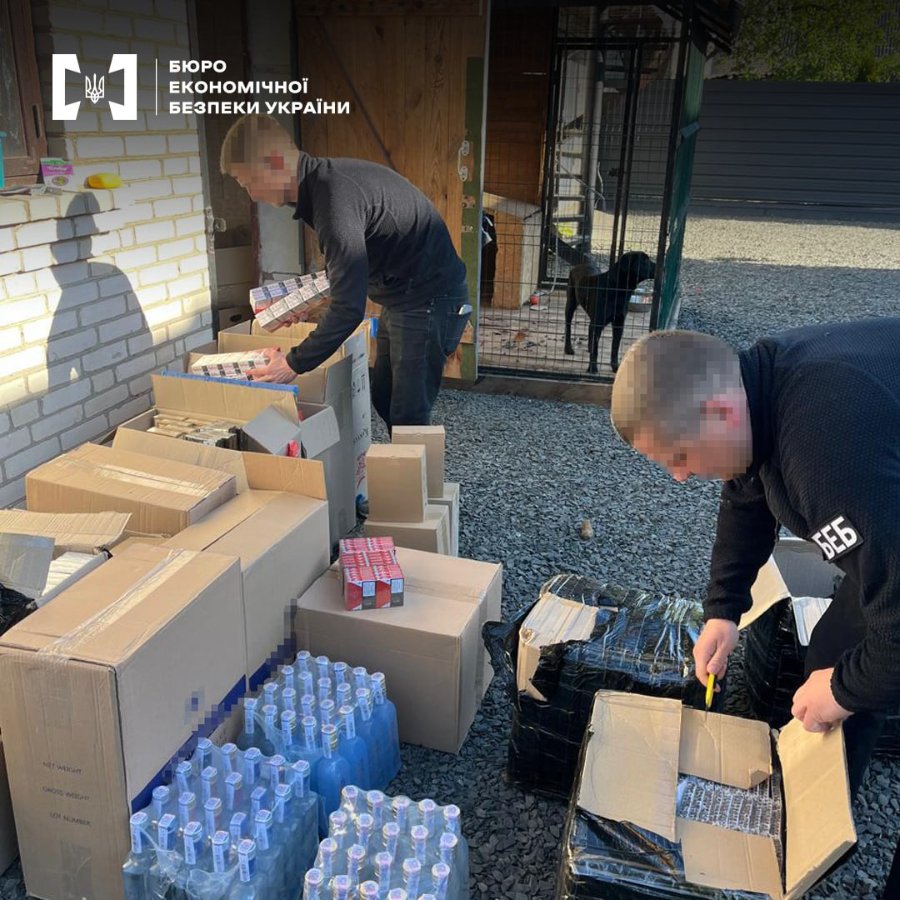 Детективи БЕБ провели обшуки, під час яких виявили та вилучили обладнання для виготовлення тютюнової продукції, два мішки тютюну, близько 6 тисяч пачок сигарет та 100 літрів алкогольних напоїв без марок акцизного податку.