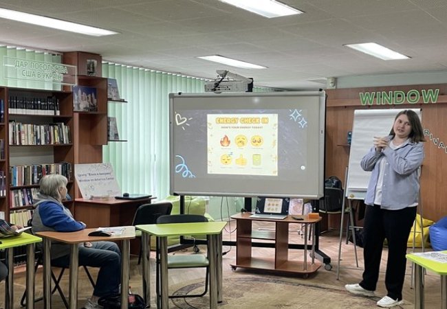 Заняття проводить студентка четвертого курсу факультету іноземної філології ВНУ імені Лесі Українки Богдана Мисанець. Перед викладанням у центрі “Вікно в Америку” вона волонтерила у подібних проєктах. Каже: для неї це шлях до майбутнього професійного росту і спосіб познайомитися з новими людьми.