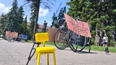 Громадська організація «Зруш скелю» сьогодні, 5 червня, встановила біля головного корпусу Волинського національного університету імені Лесі Українки інсталяцію з крісел колісних.