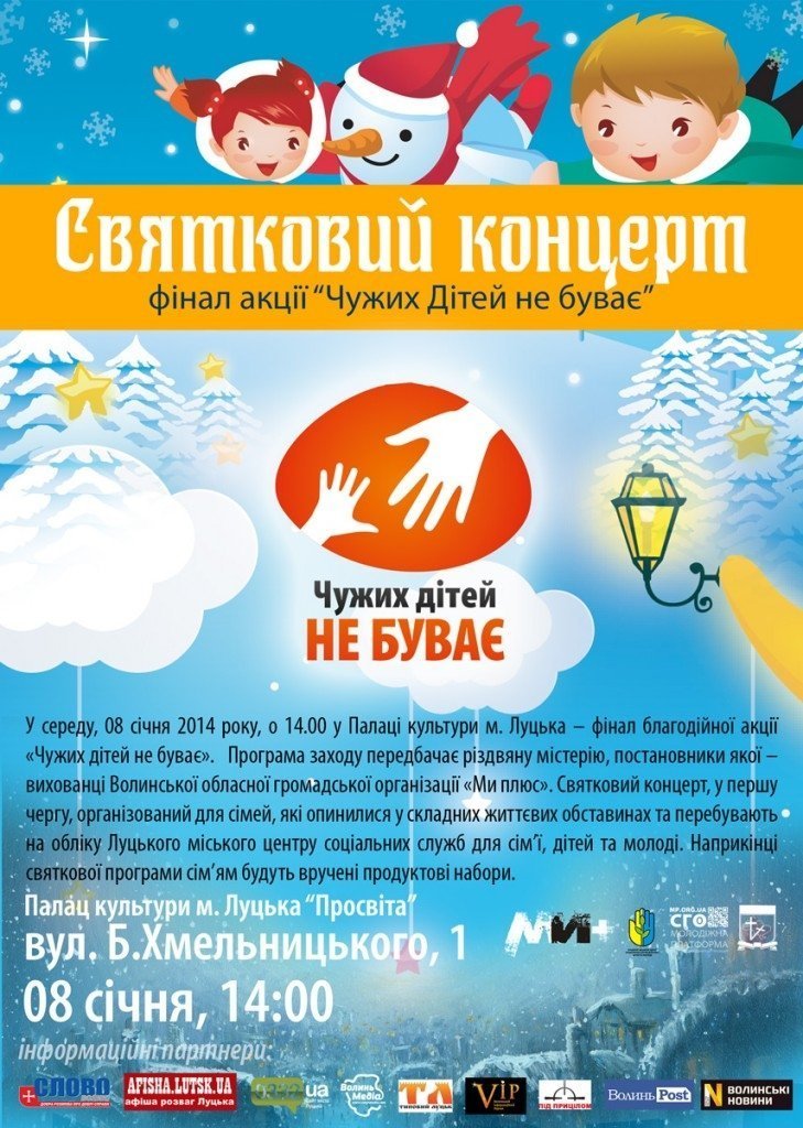 У Луцьку відбудеться концерт, який стане останнім заходом благодійної акції "Чужих дітей не буває".