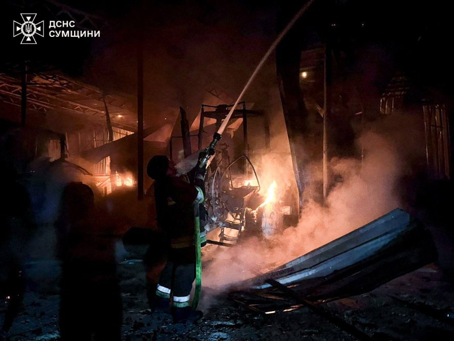 «Сумщина. Після удару російського дрона по Лебединській громаді загорілося нежитлове приміщення, де зберігалася сільськогосподарська техніка», - зазначили в ДСНС.