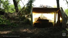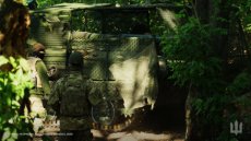 Артилерійська установка виринає з-під зеленки впевнено і швидко, займаючи позицію для ведення вогню.