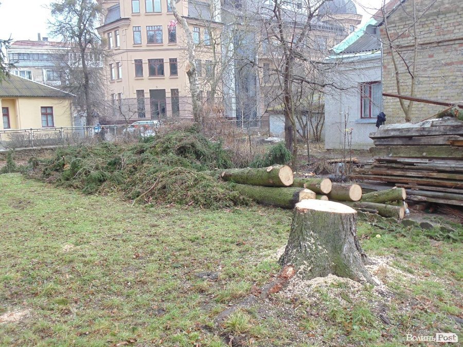 У Луцьку біля будинку за адресою Шевченка 1, що у центрі міста, поблизу управління освіти Луцької міської ради, спиляли ялинку, якій більше 60 років.