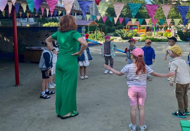 Прийом дітей відбувається на вулиці, де діти знайомляться із вихователями та роблять ранкову зарядку. У середній групі, яку веде вихователька Ольга Грицевич, у літній період перебуватиме 30 дітей.