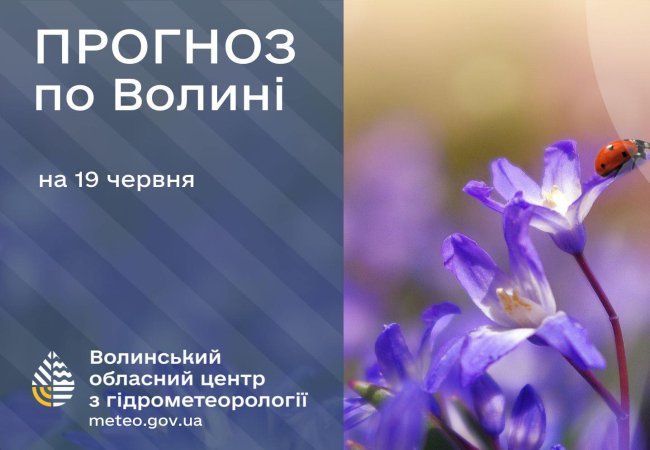 Волинський обласний центр з гідрометеорології опублікував прогноз погоди на 19 червня.