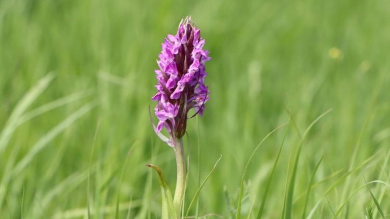 Довідково: Пальчатокорінник м’ясо-червоний — трав'яниста рослина 20–60 см заввишки з 2-4-лопатевими бульбами. Цвіте у червні — липні. Причини зникнення рослини — осушення, інтенсивне випасання, заростання луків.
