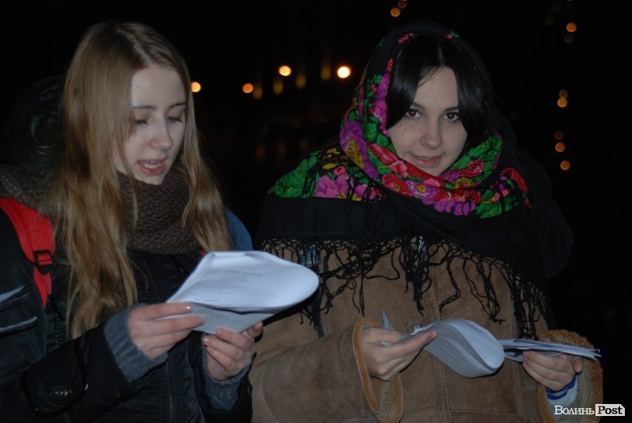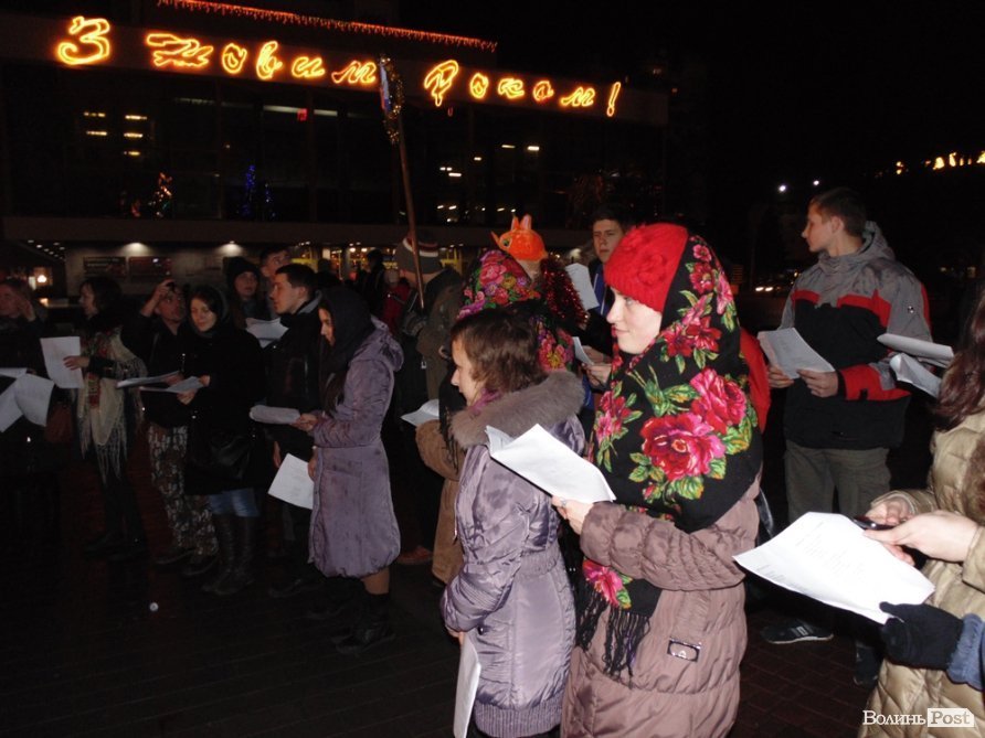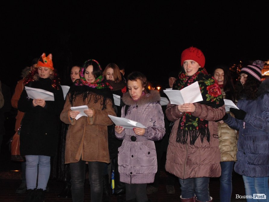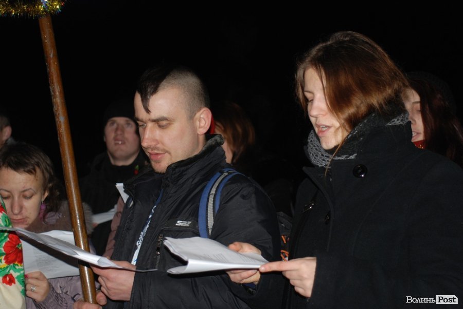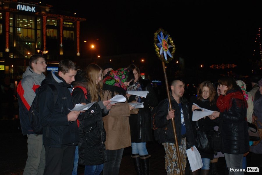 Кілька десятків людей співали колядки в центрі Луцька.