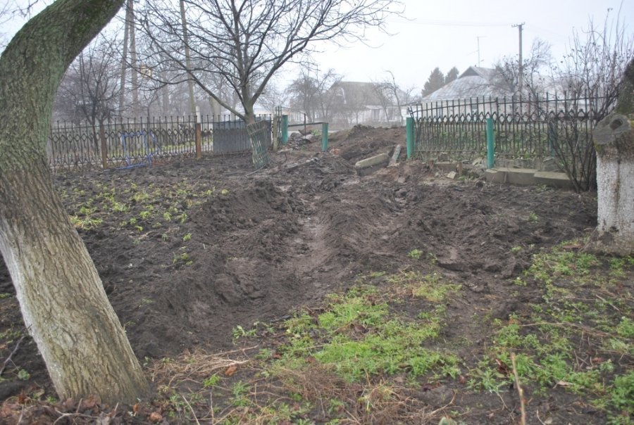 Чиновник поламав залізний паркан і спинився біля дерева в саду. За собою в болоті лишив глибоку колію.