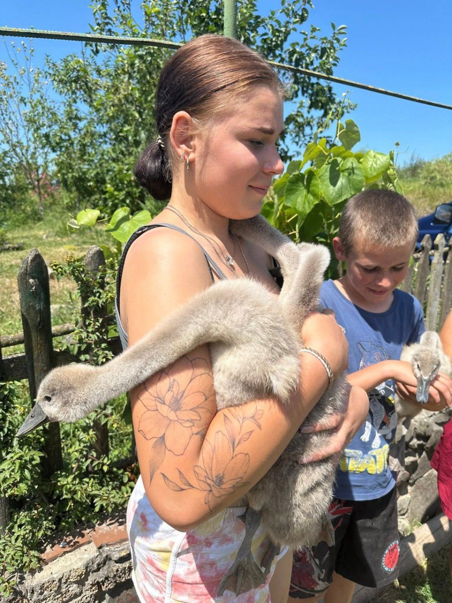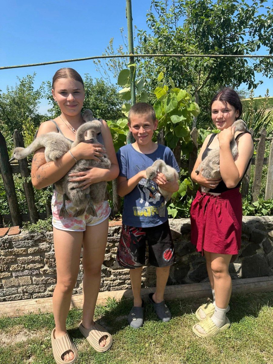 Малеча залишилась без дорослих лебедів (їх чи то загриз лис, чи то вполювали браконьєри). Лебедята зі ставка прийшли до найближчої хати.