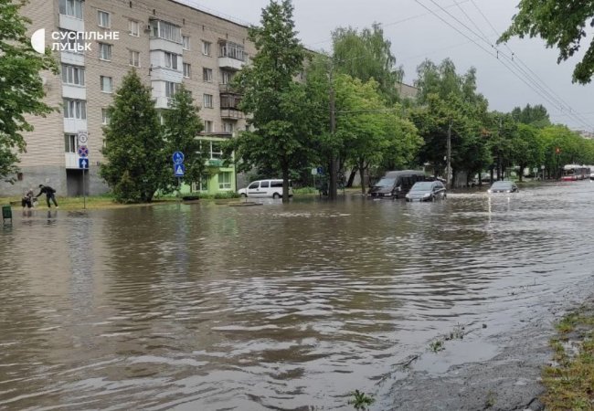 Злива у Луцьку: дощ перетворив деякі вулиці на справжні «ріки»