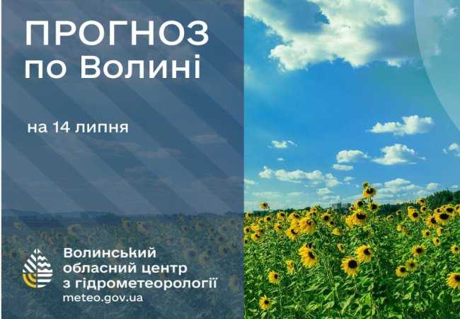 Волинський обласний центр з гідрометеорології опублікував прогноз погоди на 14 липня.