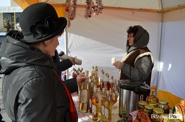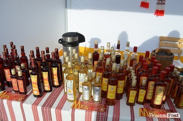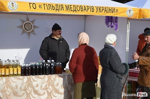 На Театральному майдані Луцька розмістили півтора десятка наметів, із яких продають питну медову продукцію.