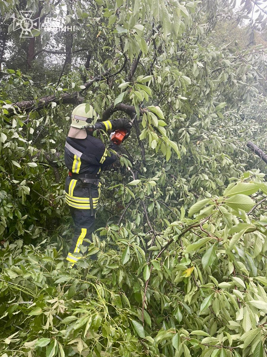 Поблизу с. Сокиричі рятувальники за допомогою бензопили розкряжували дерево, що впало на проїжджу частину і повністю перекрило рух транспорту.