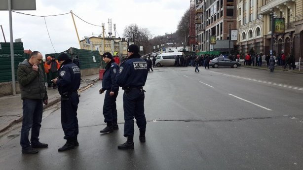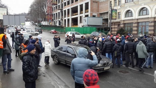 Невдовзі після того, як колона вирушила, їй заблокували дорогу на Поштовій площі. Біля місця події, як повідомляють очевидці, не дають проїхати близько 100 «тітушок».