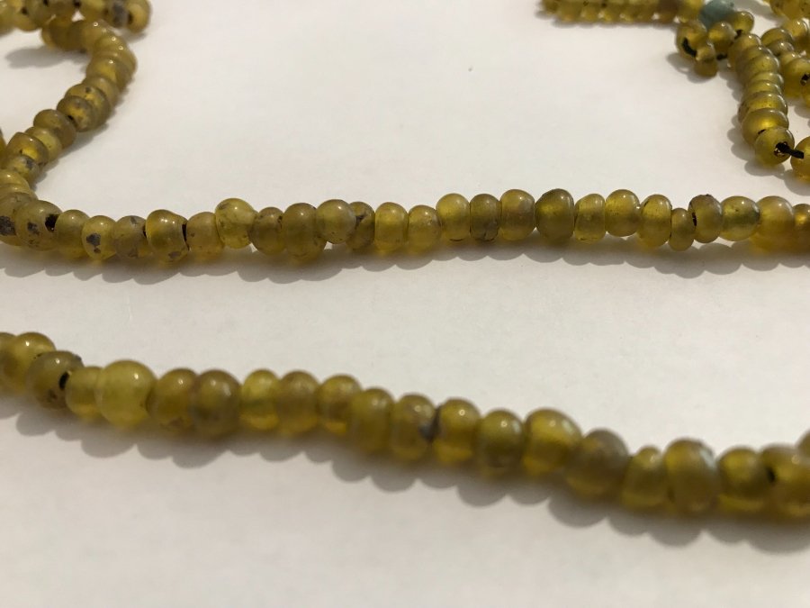 "Влітку 2025 року у об’єкті рубежу ХІІ-ХІІІ ст. в межах Окольного міста княжого Володимира на Волині трапився непересічний експонат – скляне намисто давньоруської модниці. Комплекс складається із 288 округлих намистинок жовто-бурштинового та 1 ніжно-голубого кольору діаметрами 0,4-0,6 сантиметрів із округлими наскрізними отворами для нанизування. Всього знайдено комплектно нитку у 289 намистинок загальною довжиною 120 сантиметрів та загальною вагою у 103 грами (орієнтовно 0,35 грам на одиницю)", - йдеться у дописі.