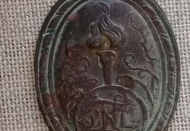 Головна зберігачка фондів зауважила, що зворотний бік не має кріплень, тож це може бути накладка — можливо, зі шкільної скриньки, футляра для документів або нагрудного знаку викладача.
