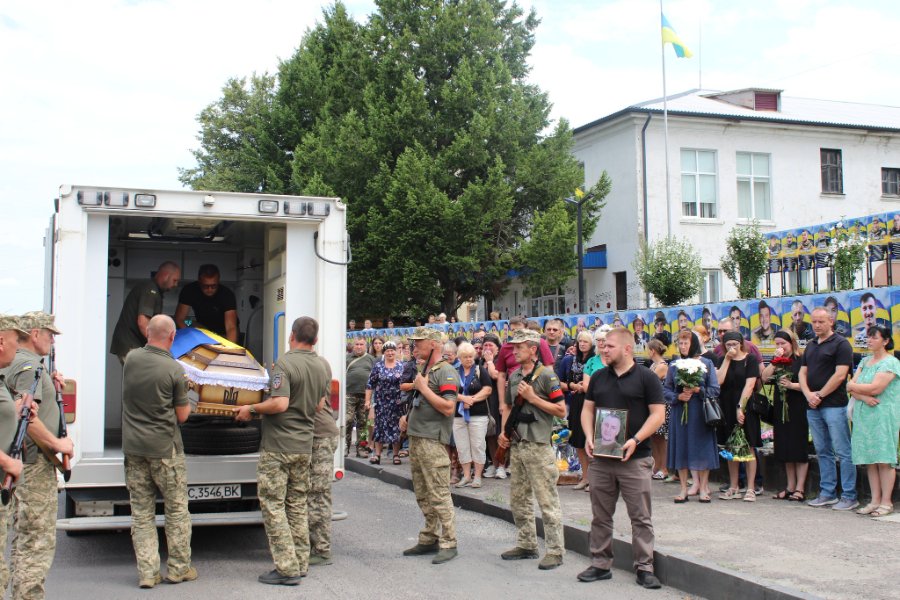 Востаннє прощаються з Героєм рідні, близькі, друзі, односельці і під тужливі мелодії військового оркестру траурний кортеж вирушає до місця останнього спочинку Героя.