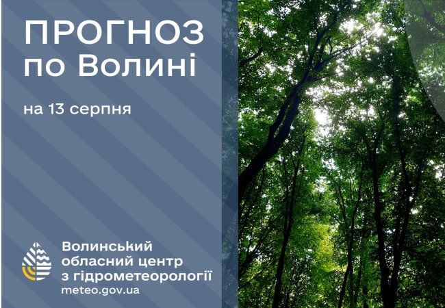Волинський обласний центр з гідрометеорології опублікував прогноз погоди на 13 серпня.