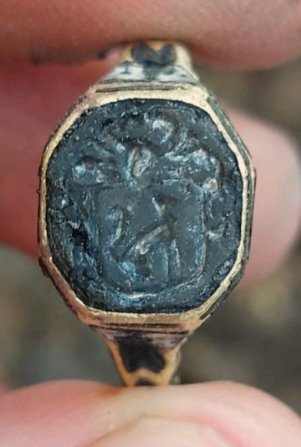 Це особистий гербовий перстень-печатка із геральдичним зображенням. Предмет надалі досліджуватимуть на його приналежність.