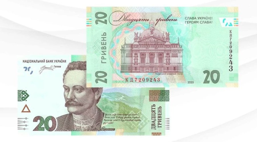 Національний банк з 21 серпня вводить у обіг модифіковані банкноти номіналом 20 гривень. У правій верхній частині на зворотному боці банкнот буде розміщено патріотичне гасло "Слава Україні! Героям слава!"